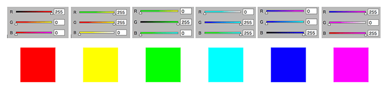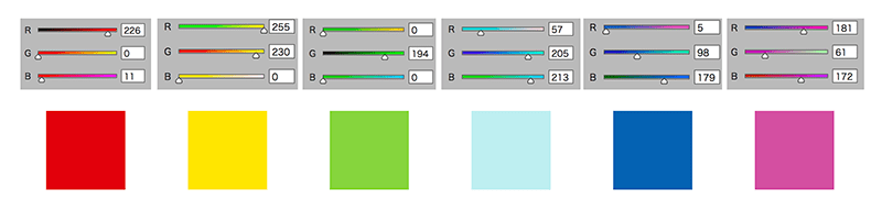 ご覧ください、この255まで振りきれたスライダを。RとGとBをシンプルに混ぜるだけで、いとも簡単に作れます。しかも、これらの色は様々なアプリケーションのデフォルトカラーパレットにトラップのように仕込まれています。あるとつい使いがちなんですよね。困ったことに。